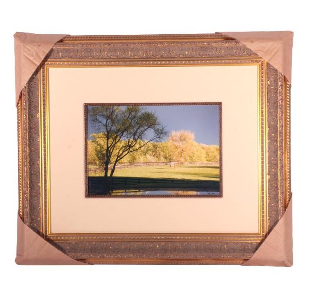 Professionally framed photograph of a grazing horse in a "sunny pasture". Hand signed lower right in monogram by Artist. Approx. 23.5 "x 27.5" framed.