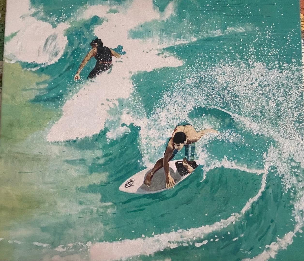 An original 23.37x26.5" acrylic on stretched canvas with artist signed COA by Roger Bigg