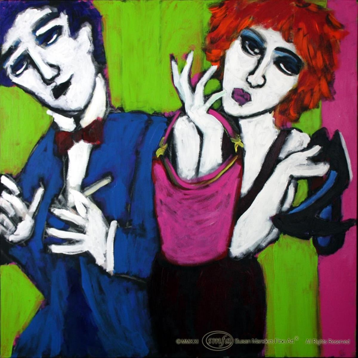 Susan Manders "Accessories" is a 36x36" original oil on canvas. "Take off your shoes, babe, and stay a while . "Susan Manders was only the 2nd Woman selected as a US Olympic artist in 1984.