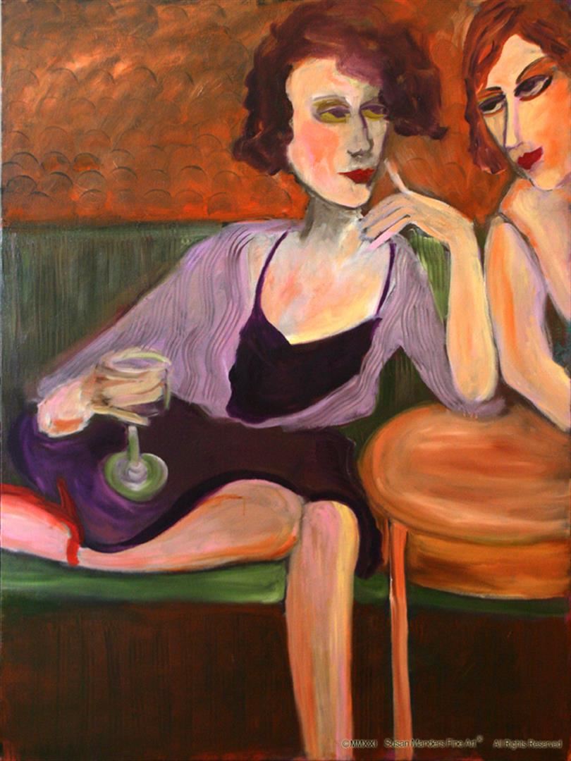 Susan Manders "He Did What?". This piece is 36 x 48 original oil on canvas. Manders works are represented in fine collections internationally & archived by the National Museum of Women in the Arts ,Washington, DC. As the 2nd woman to be selected a US Olympic Artist, Manders joins an exclusive club of internationally acclaimed artists.