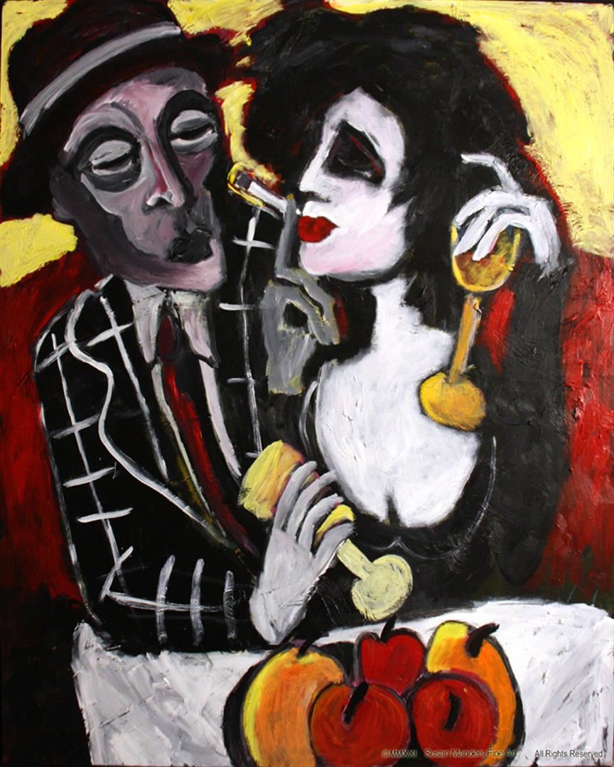 Susan Manders Original "Ghouls Night Out". This piece is 48 x 60 original oil on canvas. Manders works are represented in fine collections internationally & archived by the National Museum of Women in the Arts ,Washington, DC. As the 2nd woman to be selected a US Olympic Artist, Manders joins an exclusive club of internationally acclaimed artists.