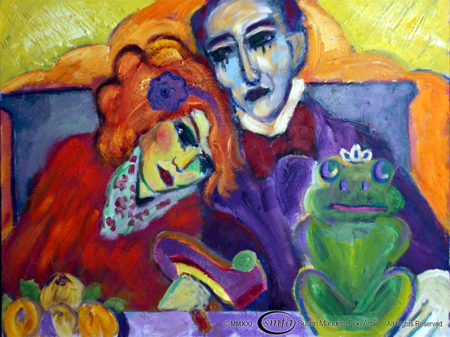 Susan Manders Original "My Prince" is a 40by30" original oil on canvas. "Somehow, I thought this might work out differently…." Susan Manders Original was only the 2nd Woman selected as a US Olympic artist in 2004. Manders works are represented in fine collections internationally & archived by the National Museum of Women in the Arts ,Washington, DC. As the 2nd woman to be selected a US Olympic Artist, Manders joins an exclusive club of internationally acclaimed artists.