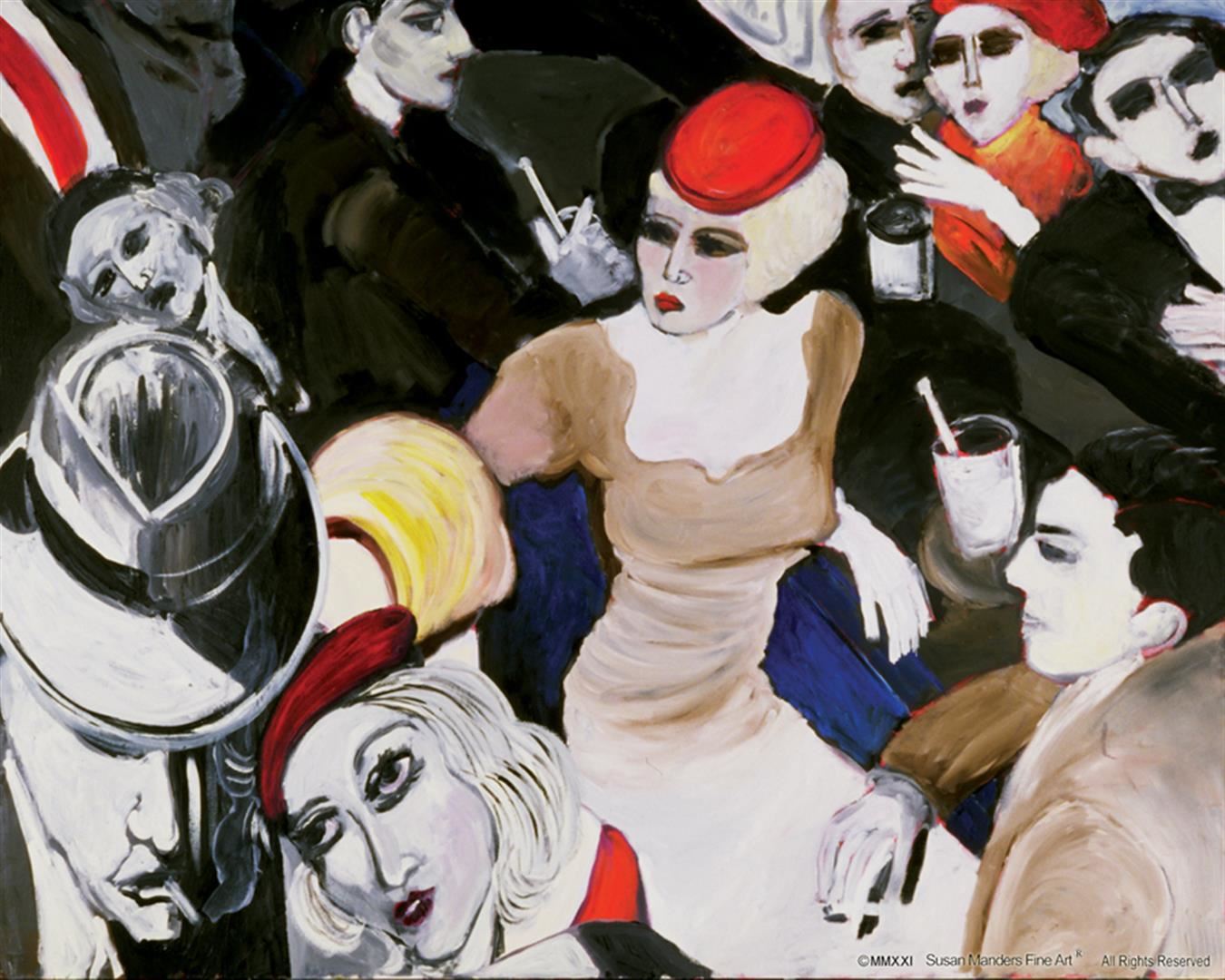 The "In Crowd" opens wide in Susan Manders striking painting "Star Gazing". A 60 x 48" original oil on canvas. Manders works are represented in fine collections internationally & archived by the National Museum of Women in the Arts ,Washington, DC. As the 2nd woman to be selected a US Olympic Artist, Manders joins an exclusive club of internationally acclaimed artists.