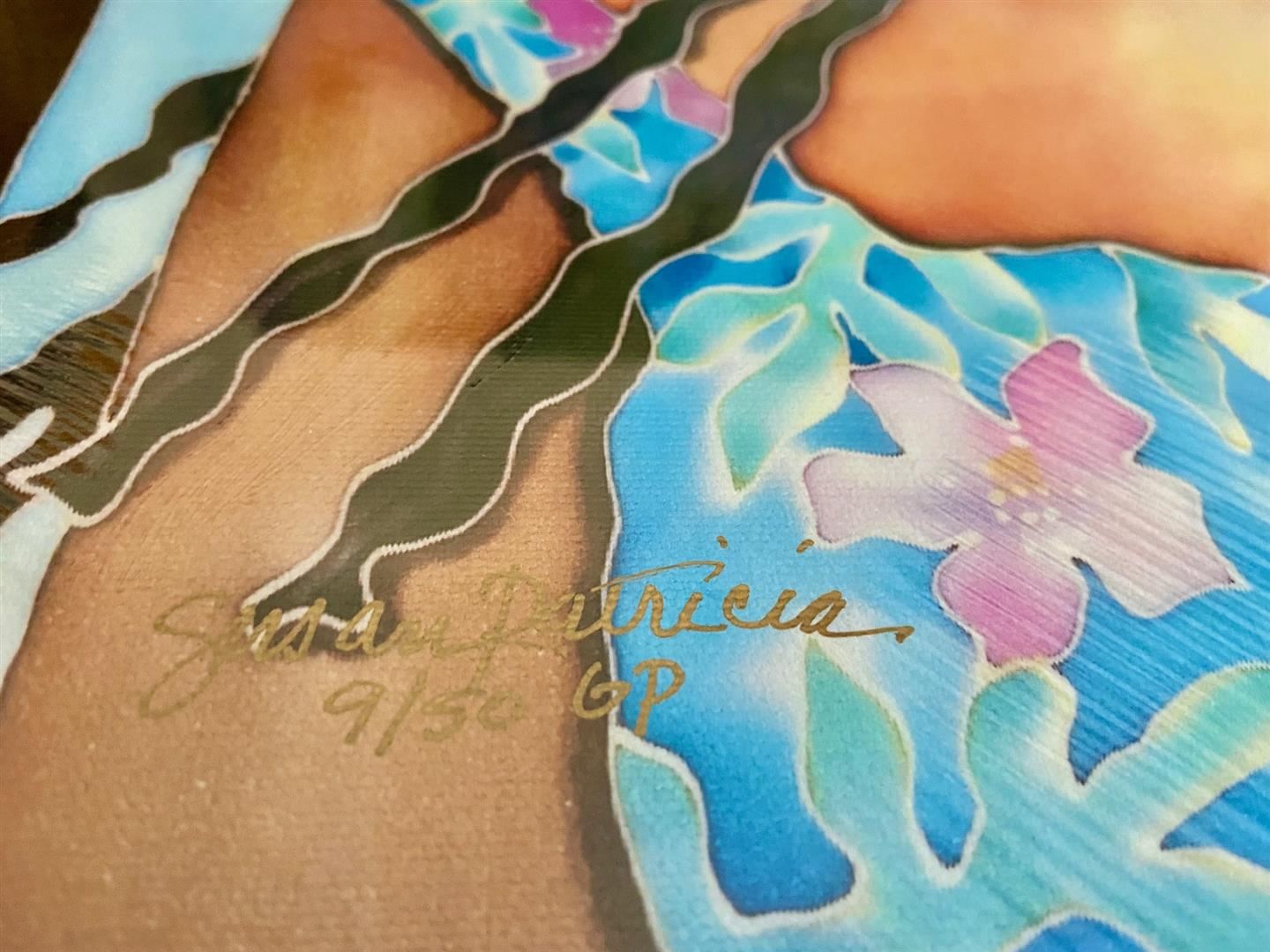 Hats are in, as the sun gets hot on the shores of the Hawaiian Islands. Susan Patricia's 20X36" limited edition giclee on canvas is unframed & signed.