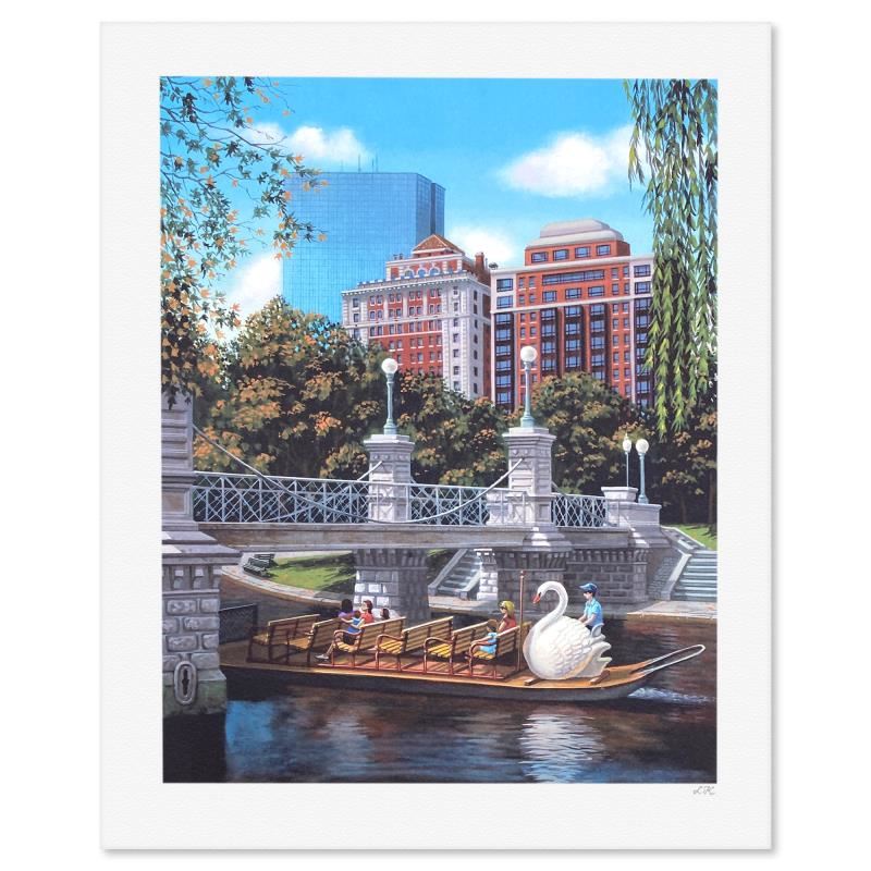 "Swan Ferry, Boston" is a limited edition lithograph on paper by Liudmila Kondakova, hand signed by the artist. Includes Certificate of Authenticity from Chalk & Vermilion Fine Arts. Measures approx. 12" x 11.5" (border), 7.5" x 9.5" (image).