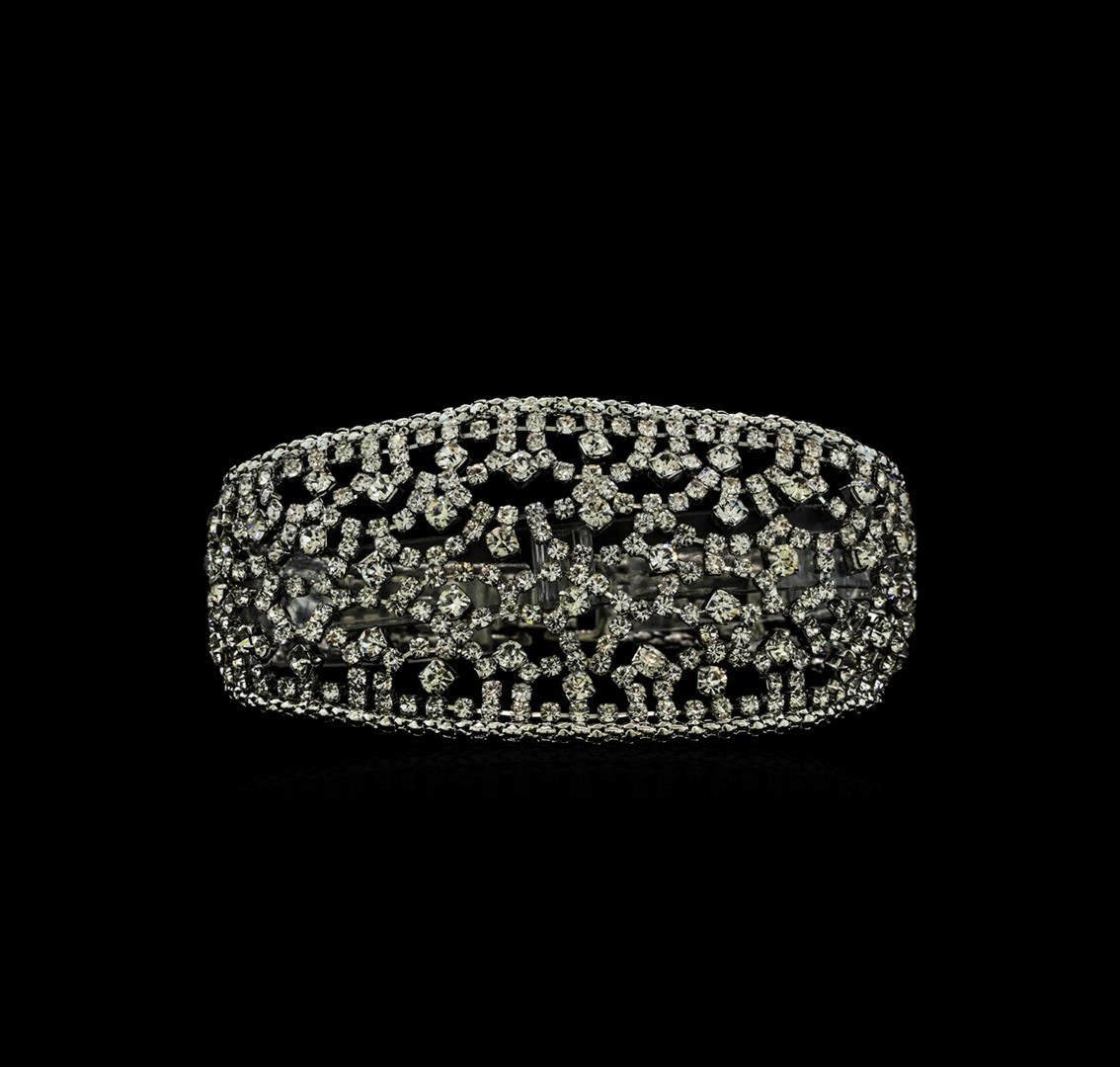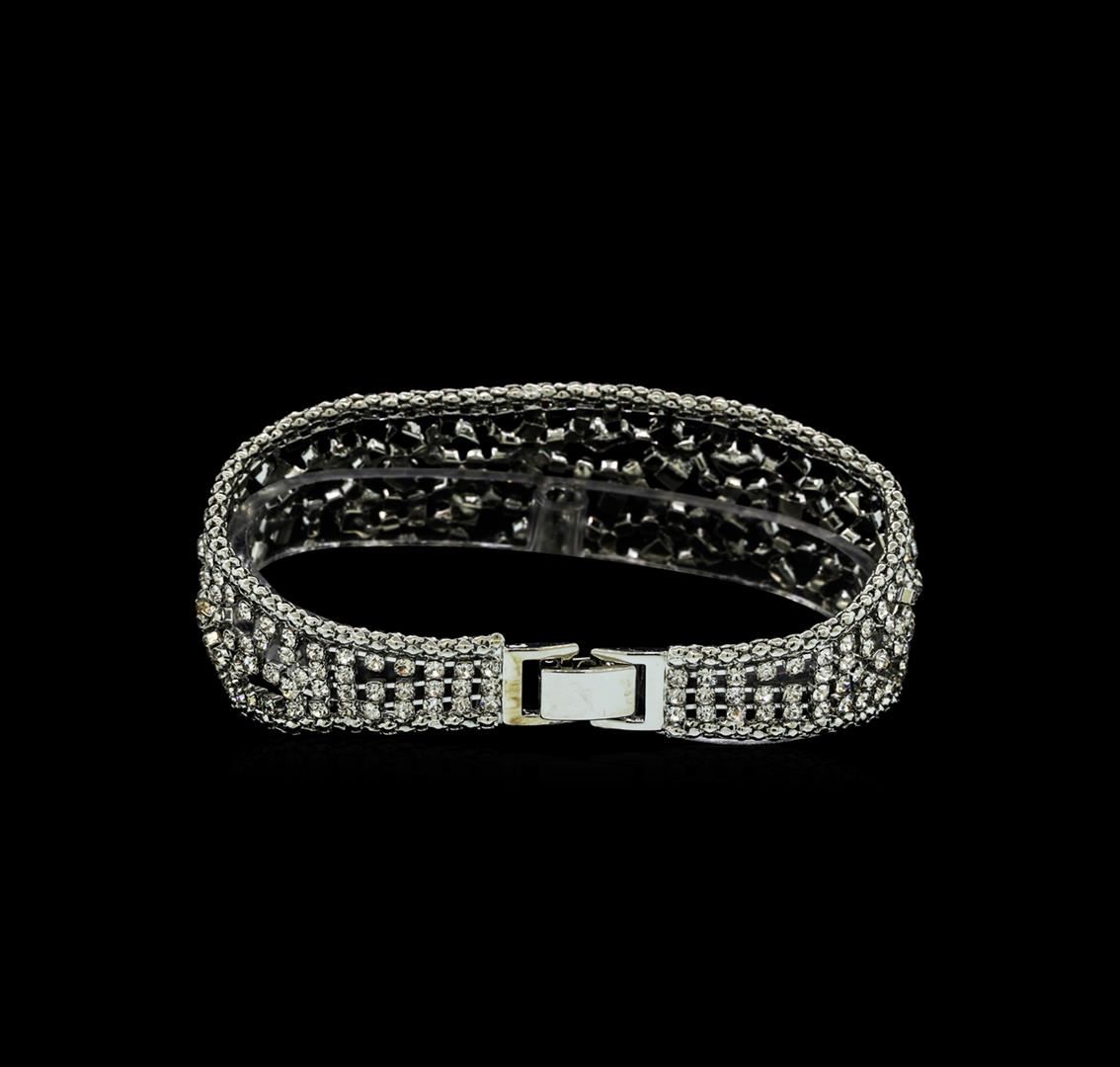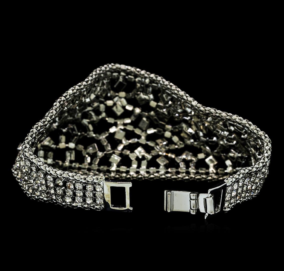 High end designer jewelry. Swarovski Crystal Cocktail Bracelet - Silver Plated. Hand Woven Silver Plated Metal. Silver/ Clear. 5.5inches.