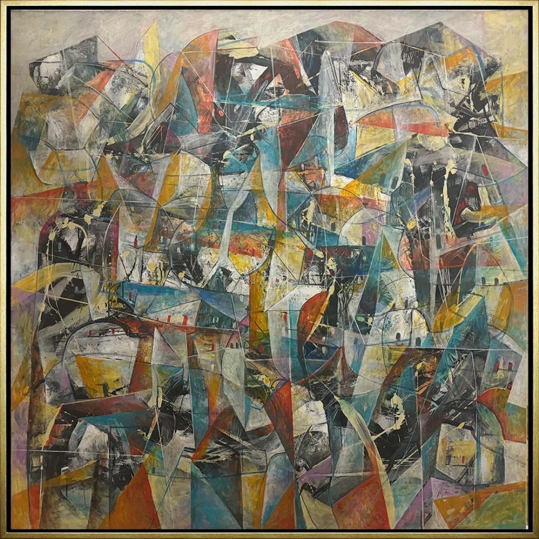 Phenomenal original acrylic on canvas. Hand signed by artist. This artwork comes beautifully framed and ready to hang Art size 55x55.