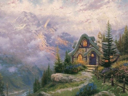 Sweetheart Cottage III by Thomas Kinkade. Unframed and stretched on Limited Edition enhanced canvas. Comes with certificate of Authenticity! Dimension (inches): 18x24