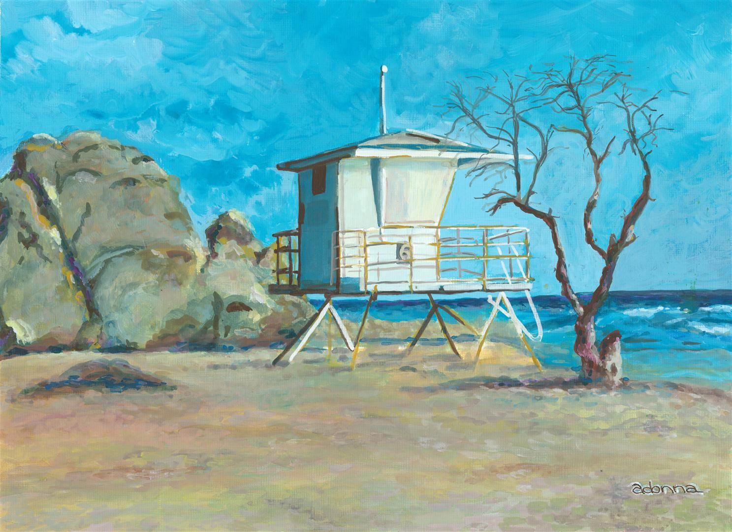 An ORIGINAL 12x9" gouache painting of the California Coast near Point Mugu, on wood panel by Adonna
