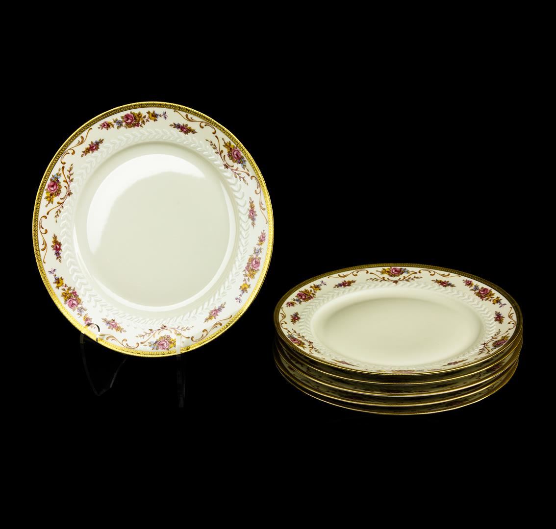 TIRSCHENREUTH Dinner SERVICE FOR 6 china Pink roses, gold rimmed FLOWERS 18-piece Service. Beautiful VINTAGE Dinner Service consisting of 18 pieces. The decorative service features pink roses, yellow and blue flowers and think gold banding. Very elegant. Included In this set are the following pieces: 6 Dinner Plates 9.5", 6 Salad Plates 7.5", 6 Soup Bowls 8.75", All items are in excellent vintage condition - no chip, cracks or scratches. Valued between $150-$200.