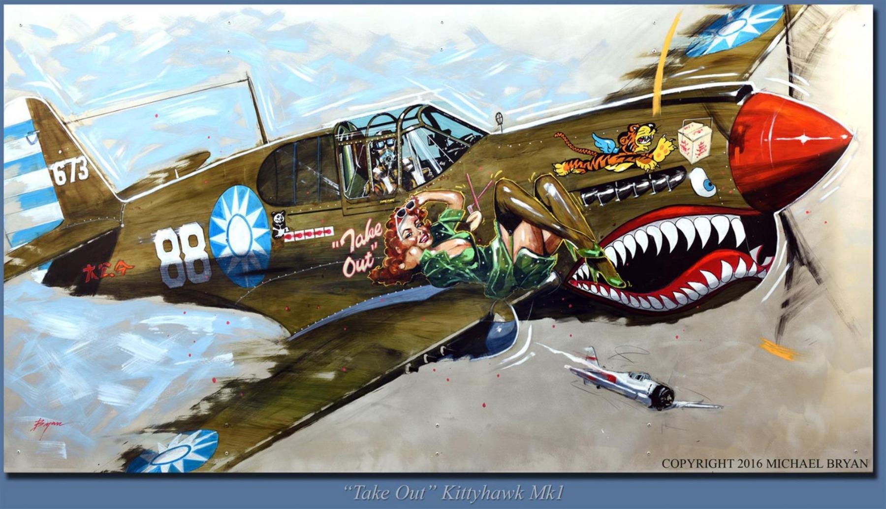 It's the enemy they will "Take out" in this tribute to WWII bomber-pilots, an homage by Michael Bryan , in a handworked 20x40" giclee on canvas numbered 1/1.
