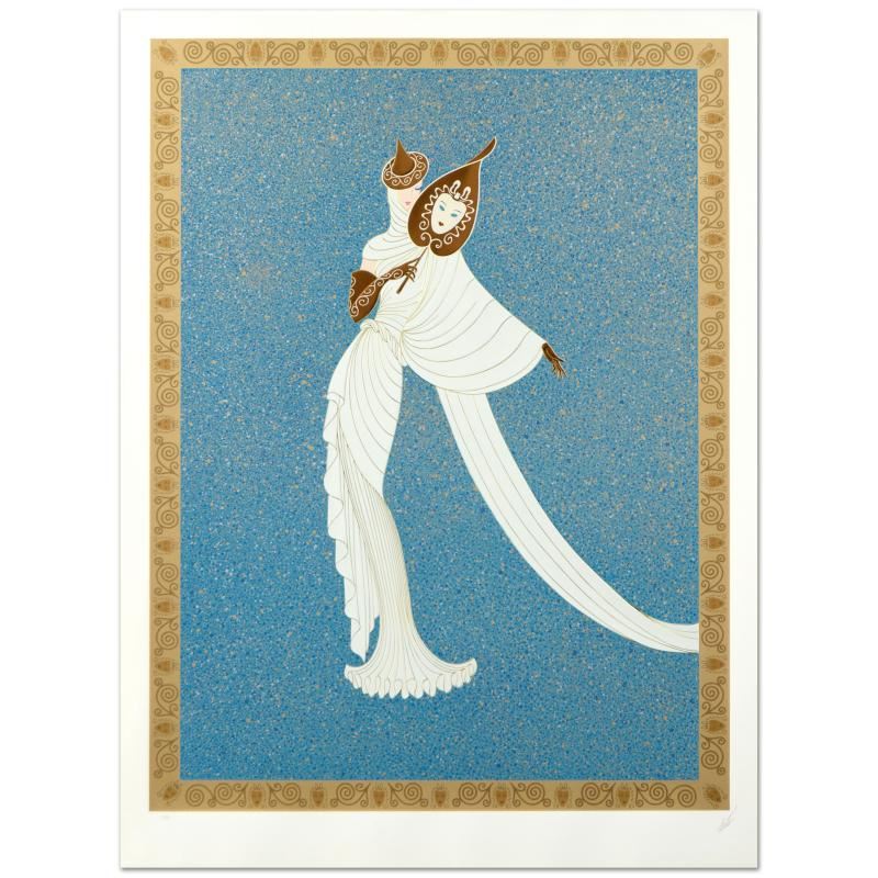 "Tanagra Turquoise" is a limited edition serigraph on paper, numbered and hand signed by the artist. Includes Certificate of Authenticity! Measures approx. 30.5" x 41" (with border), 27" x 36" (image). ** Please note: Due to the age of this piece and the delicate nature of the paper it may have some slight imperfections. **