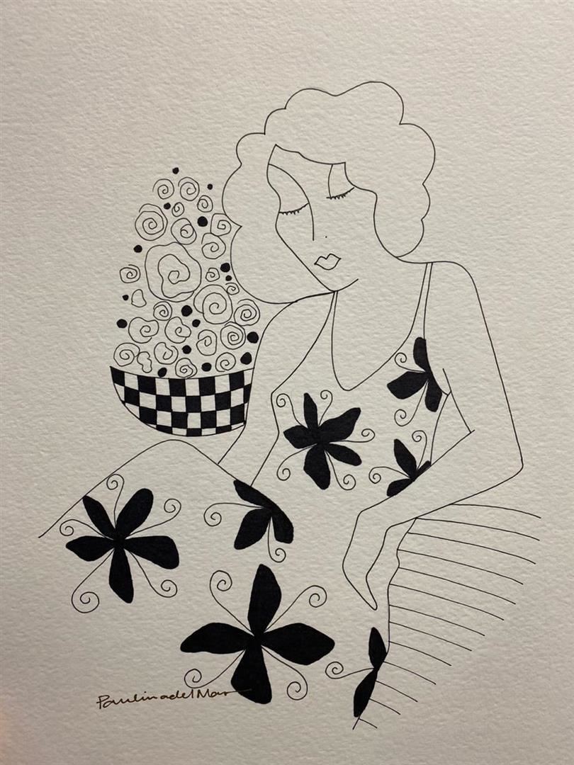 Tarkay Lady 13 by Del Mar, Paulina. Original One-of-a-Kind Hand Signed Pen and Ink. Dimensions: 15 x 11. Excellent Condition.