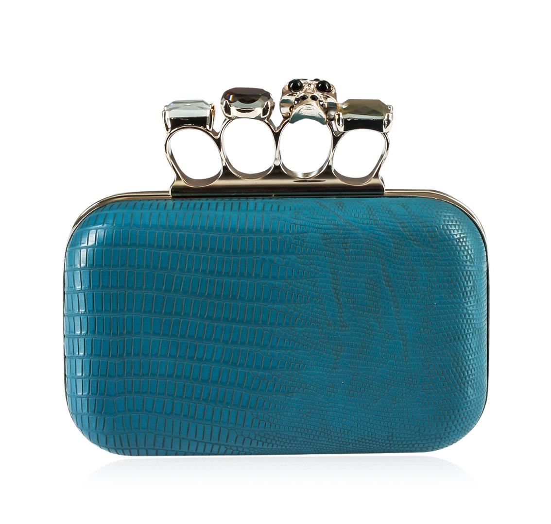 A Beautiful Teal Blue Textured Evening Clutch with accent Stones.