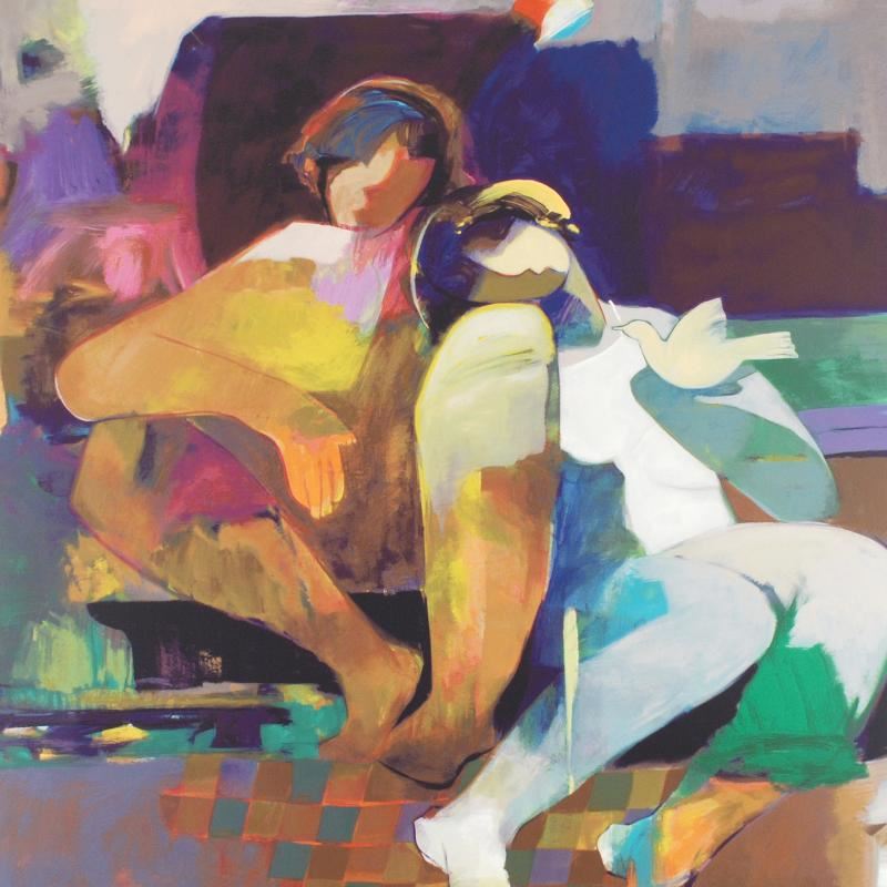 Displaying expressionist brushstrokes and vivid colors, Hessam Abrishami's paintings are rich with life and emotional intensity. "Tender Shoulders" is a limited edition serigraph on canvas, numbered and hand signed by the artist. Includes Certificate of Authenticity! Measures approx. 36" x 36" (image).