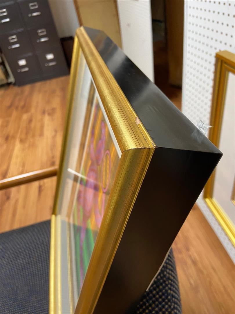 Modern Master Victor Vasarely shows us how to breakdown the elements of a tennis player into cubist construction. A 22x18" framed serigraph #255/300. Frame has a nick at the top of one corner. See photo.