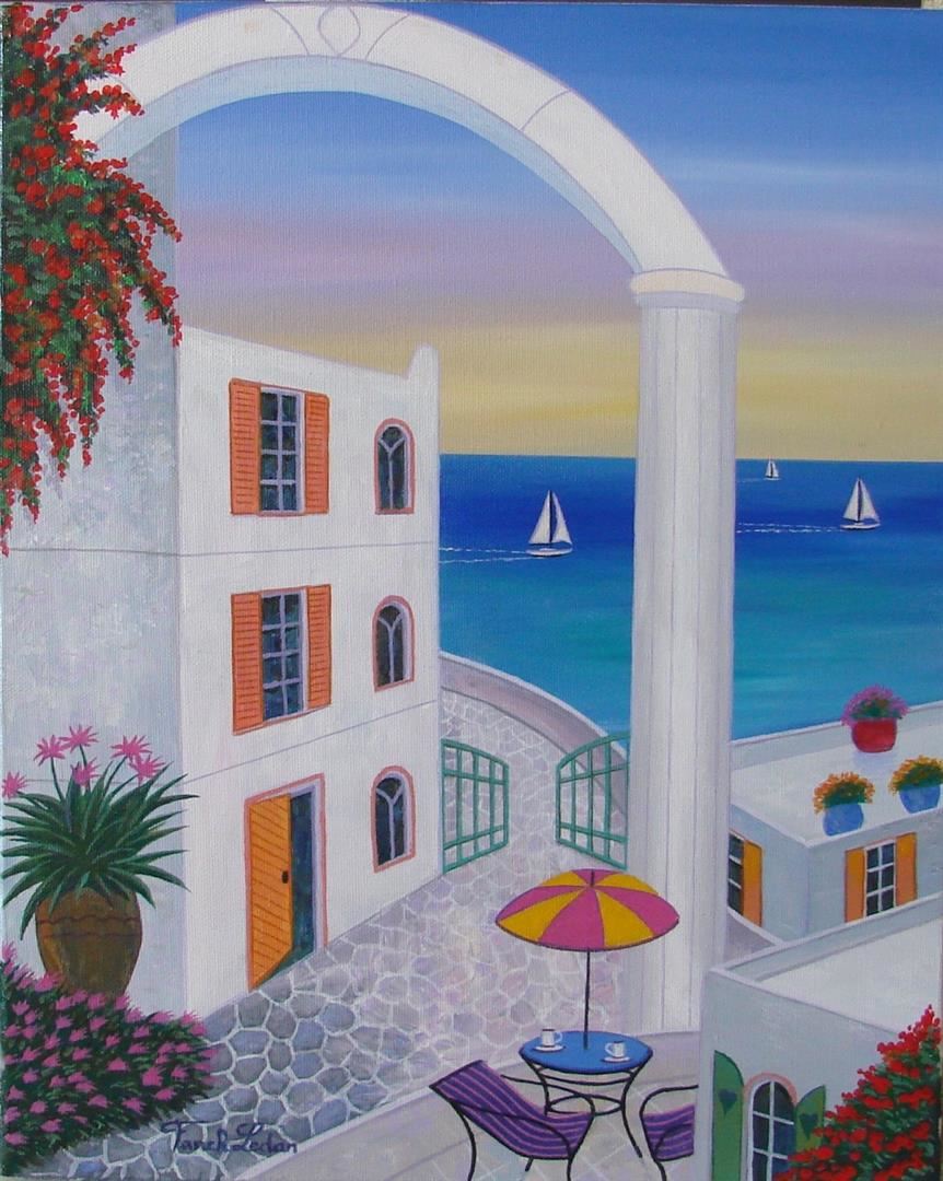 A beautiful Fanch Ledan original 13x16.25 taking us to the beautiful Coast of Greece. Hand signed by artist. This artwork comes stretched w/ Artist COA.