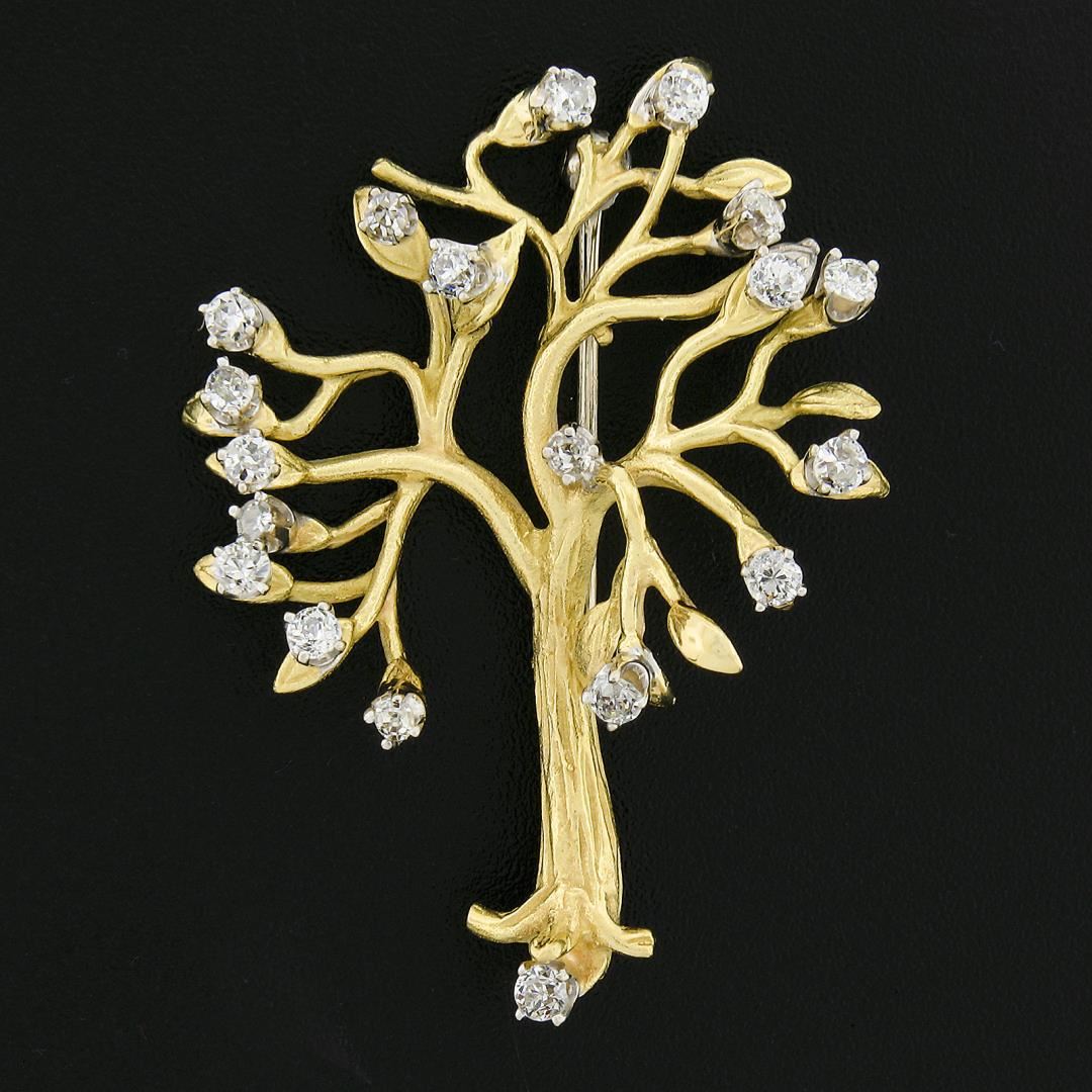 A solid 18k yellow & white gold tree brooch, with 19 old european & single cut natural diamonds (F/I - VS2-I1 ; 1ctw ). Measures 45.4x33.3mm and weighs a total of 8.54 grams.