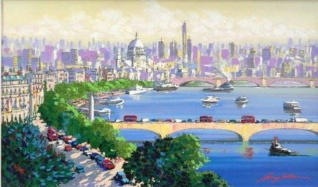 Serigraph on Canvas Embellished, 18 x 30, unframed w/COA