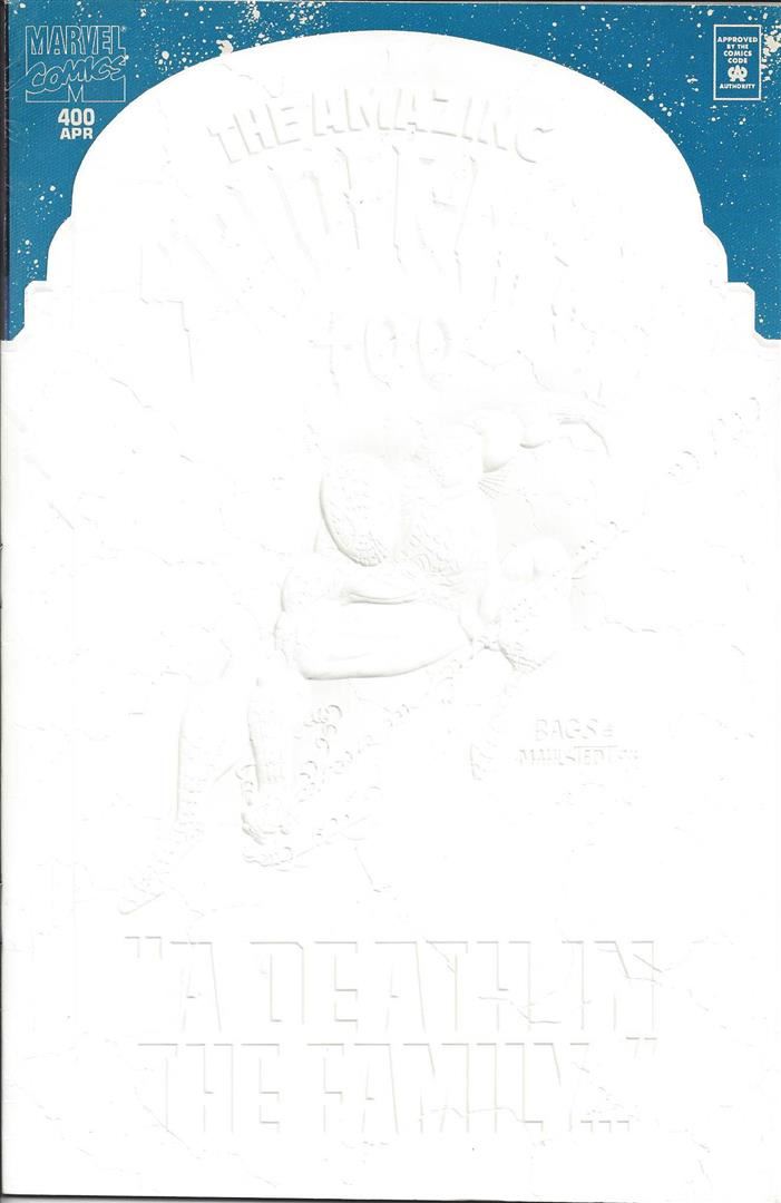 One copy of The Amazing Spiderman #400, "A Death in the Family" from April 1995. This issue is the rare white cover variant and features the death of Aunt May