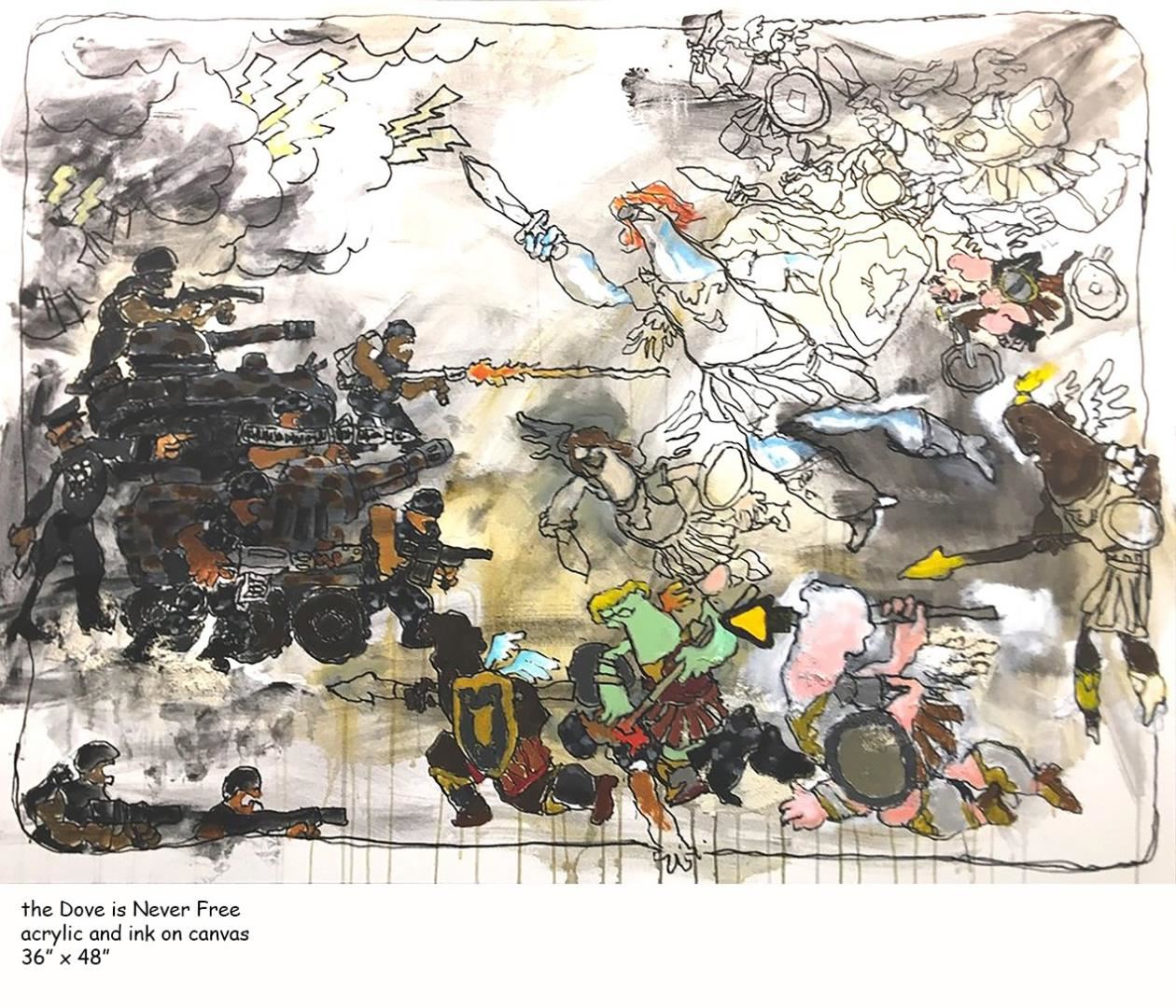 War battles Peace in this homage to Leonard Cohen's "Anthem" by Stephen Holland original 36x48" acrylic & ink on canvas; with COA