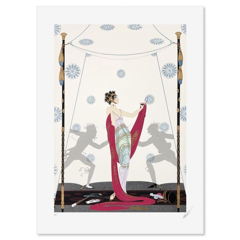 "The Duel" is a limited edition serigraph from an HC edition on paper by Erte (1892-1990), hand signed by the artist. Includes Letter of Authenticity. Measures approx. 30.5" x 22.5" (border), 25" x 17.5" (image).