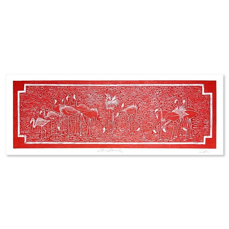 The Flock by Hockey, Hari. "The Flock" is a limited edition lithograph on paper by Hari Hockey, numbered and hand signed by the artist. Includes Letter of Authenticity. Measures approx. 30" x 11.5" (border), 25" x 8" (image). There may be minor imperfecti