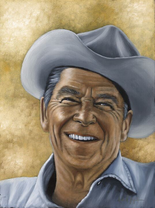 A famous portrait of Ronald Reagan on his Santa Barbara area ranch, by the late great Michael Joseph. This original 24x18 acrylic on canvas