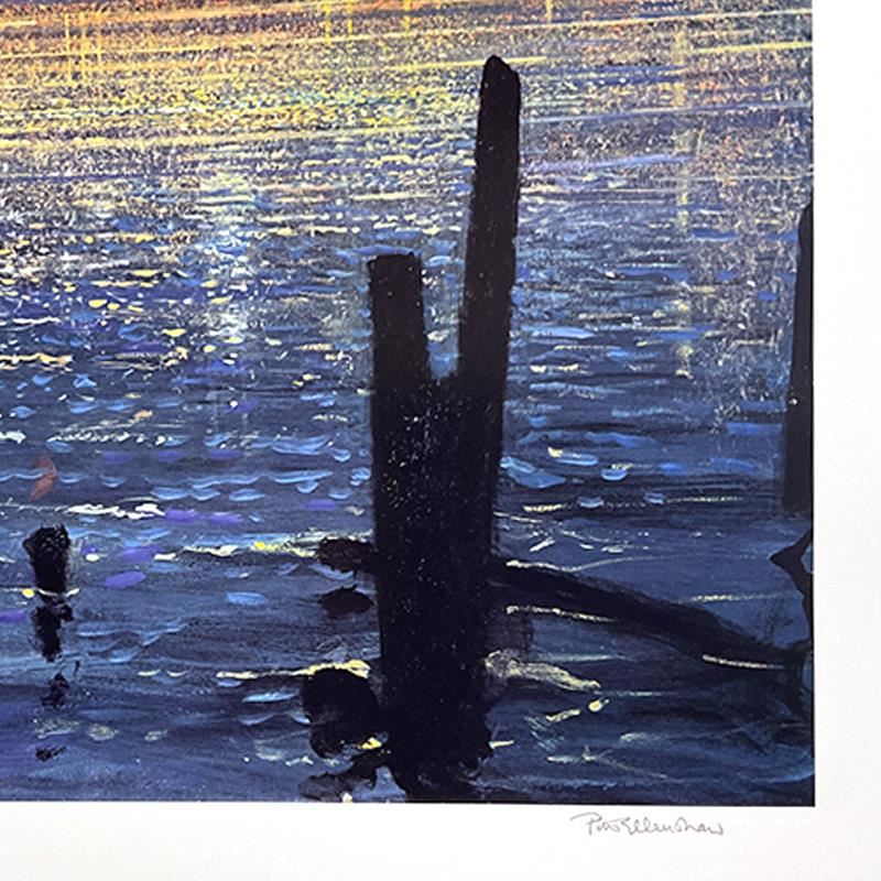 The Glisten of New York is a limited edition lithograph on paper by Peter Ellenshaw (1913-2007), numbered and hand signed by the artist. Includes Letter of Authenticity. Measures approx. 36 x 24.5 (border), 31 x 19 (image). Please note: there may be minor creases on the paper; specifically, a crescent shaped crease on the top-left part of the image that is only visible from certain angles. **