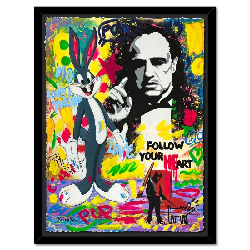 "The Godfather" is a one-of-a-kind mixed media on deckle edge paper by Nastya Rovenskaya; hand signed by the artist. This piece comes custom framed and includes letter of authenticity. Measures approximately 46" x 36" (framed), 40" x 30" (image). This item requires special handling and may have a longer than usual turnaround.