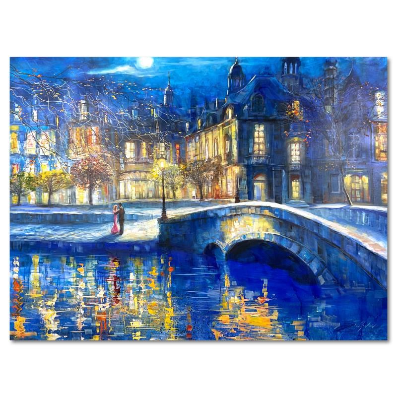 "The Gold Coast Romance" is an original oil painting on stretched canvas by Vadik Suljakov, hand signed by the artist. Includes Letter of Authenticity. Measures approx. 40" x 30" (image).