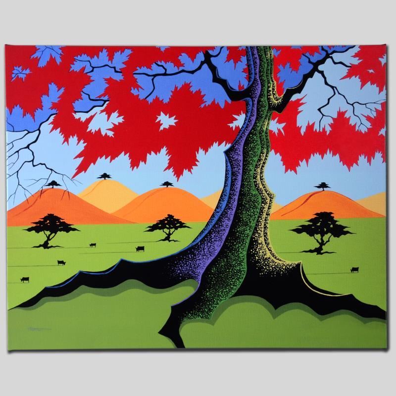 Larissa Holt, a student of distinguished artist Eyvind Earle(1916-2000), uses bold colors and breathtaking scenery to create images of Nature in her own unique style. "The Hills Have Trees" is a limited edition giclee on stretched canvas by Holt, numbered and bearing Holt's authorized signature. This piece comes gallery wrapped. Includes Letter of Authenticity. Measures approx. 27" x 22" x 1.5" (image). This item requires special handling and may have a longer than usual turnaround.
