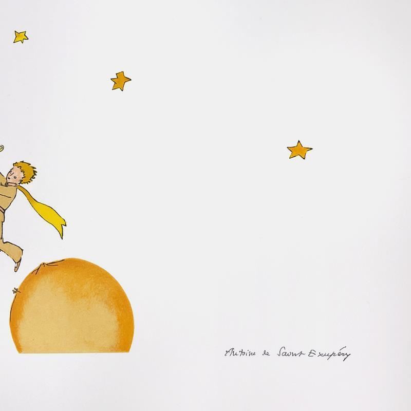 "The Little Prince Flying Away" is a limited edition lithograph by Antoine de Saint-Exupery (1900-1944), bearing the plate signature of the artist. This piece comes from an edition of 300 authorized by the Exupery Estate, but the pieces in this edition are not individually numbered. This piece comes custom framed. Includes Certificate of Authenticity. Measures approx. 25.5" x 21.5" (frame), 19.5" x 15.5" (image). This item requires special handling and may have a longer than usual turnaround.