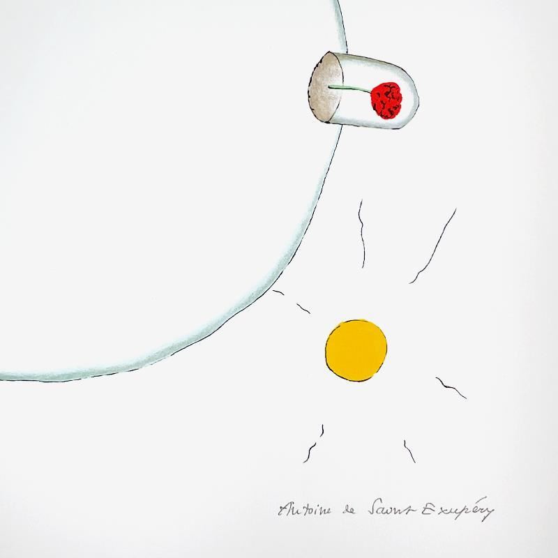 "The Little Princes Volcano" is a limited edition lithograph by Antoine de Saint-Exupery (1900-1944) bearing the plate signature of the artist. This piece comes from an edition of 300 authorized by the Exupery Estate but the pieces in this edition are not individually numbered. This piece comes custom framed. Includes Certificate of Authenticity. Measures approx. 21.5" x 25.5" (frame) 15.5" x 19.5" (image).