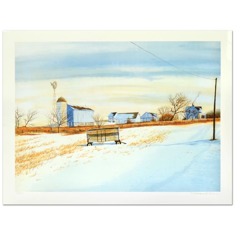 "The Lonely Wagon" is a limited edition lithograph on paper by William Nelson, numbered and hand signed by the artist! Measures approx. 29" x 22" (with border); 26" x 19" (image).