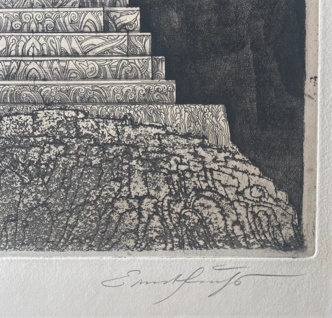 The Pyramid of the Night by Fuchs, Ernst. Limited Hand Signed Etching. signs of handling or age. Dimensions: 21 x 15. Good Condition.