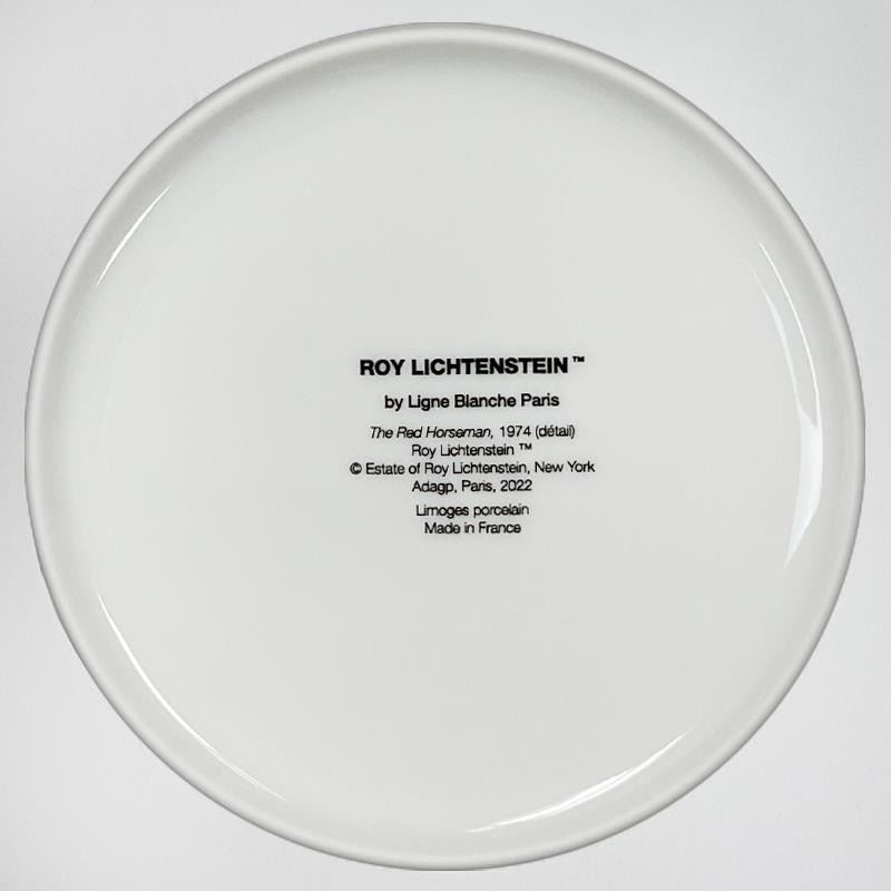 "The Red Horseman" is a Limoges porcelain plate bearing the plate signature inverso of Roy Lichtenstein (1923-1997). This piece comes custom framed. Includes Letter of Authenticity. Measures approx. 16" x 16" (frame), 11" (plate diameter).