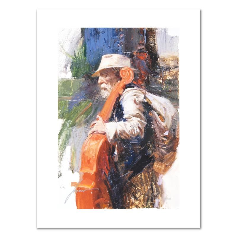 "The Red Viola" is a limited edition giclee on canvas by Pino (1939-2010), numbered and hand signed by the artist. Includes Certificate of Authenticity. Measures approx. 12" x 18" (image).