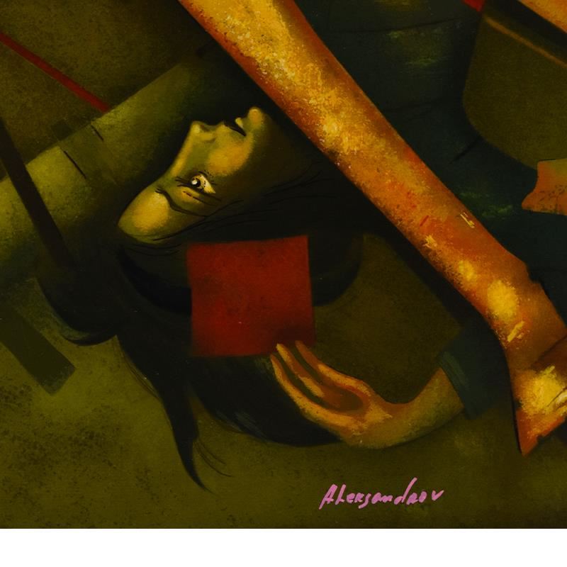 "The Rider" is a limited edition serigraph on paper by Mihail Aleksandrov, numbered and hand signed by the artist. Includes Letter of Authenticity. Measures approx. 58" x 44.5" (border), 56" x 42.5" (image). ** Please note: There are some scuffs and hairline cracks on the image, as well as imperfections in the white border area (creases and/or smudges). **