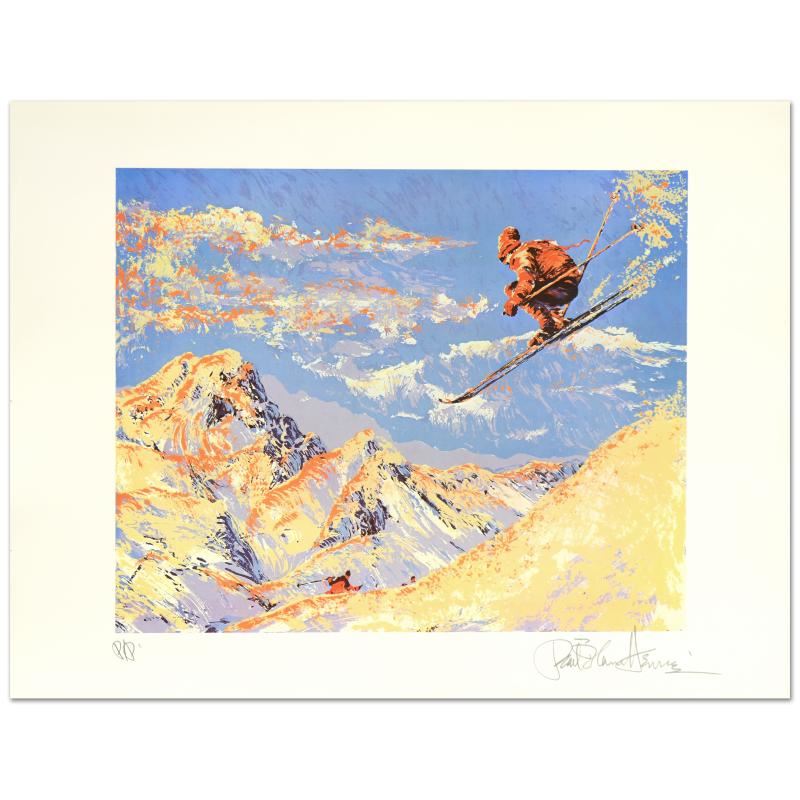 "The Sunset Skier" is a limited edition serigraph on paper from a PP edition and hand signed by Paul Blaine Henrie (1932-1999)! Includes Certificate of Authenticity! Measures approx. 26" x 20" (border), 19" x 15" (image).