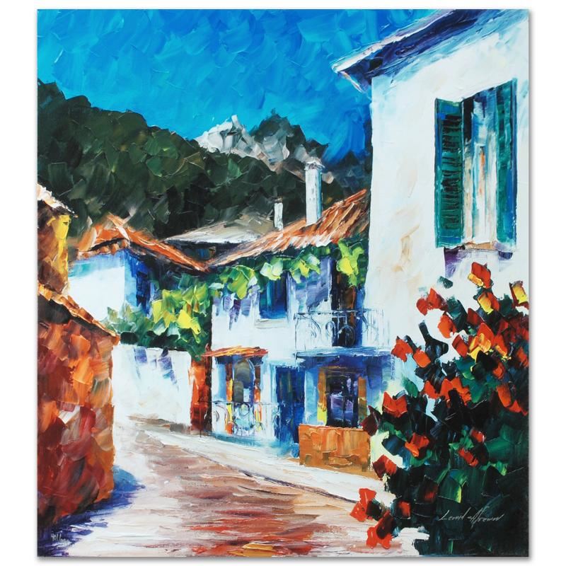 Leonid Afremov's masterful use of color and texture make his paintings unique collectibles that are sure to brighten any wall. "The Villa" is a limited edition giclee on stretched canvas, numbered and bears Afremov's authorized signature. This piece comes gallery wrapped. Includes Certificate of Authenticity! Measures approx. 22" x 20" (image).