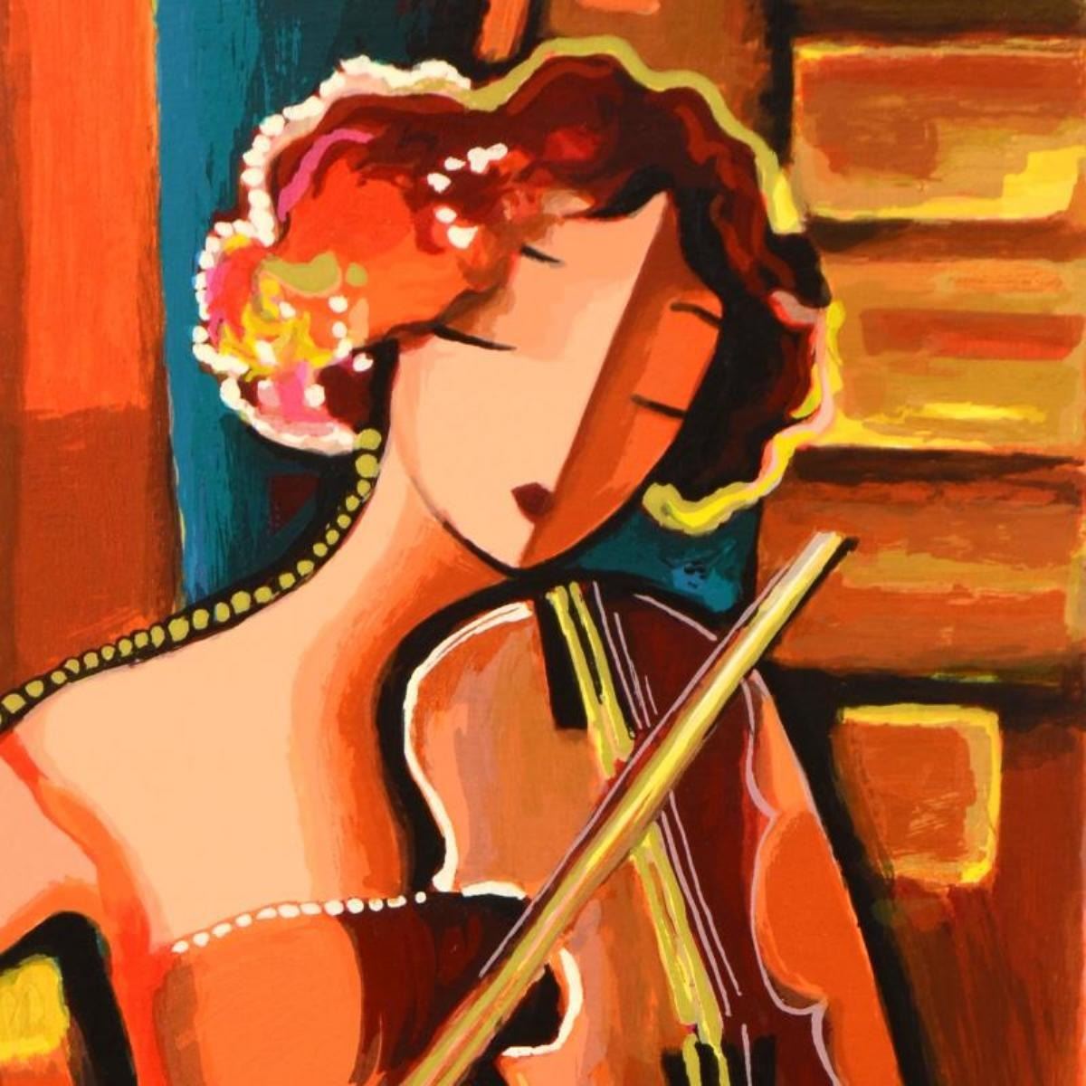 The Violinist by Kerzner, Michael. "The Violinist" is a limited edition serigraph on paper, numbered and hand signed by Michael Kerzner. Includes Certificate of Authenticity. Measures approx. 11.5" x 24.5" (border); 10" x 23" (image).