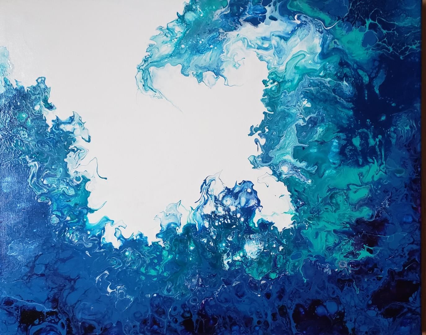 A 16x20" original acrylyc on stretched canvas featuring a power wave about to break. Says Katie D. :"Living in California, ocean is a huge part of life and an inspiration."w/COA