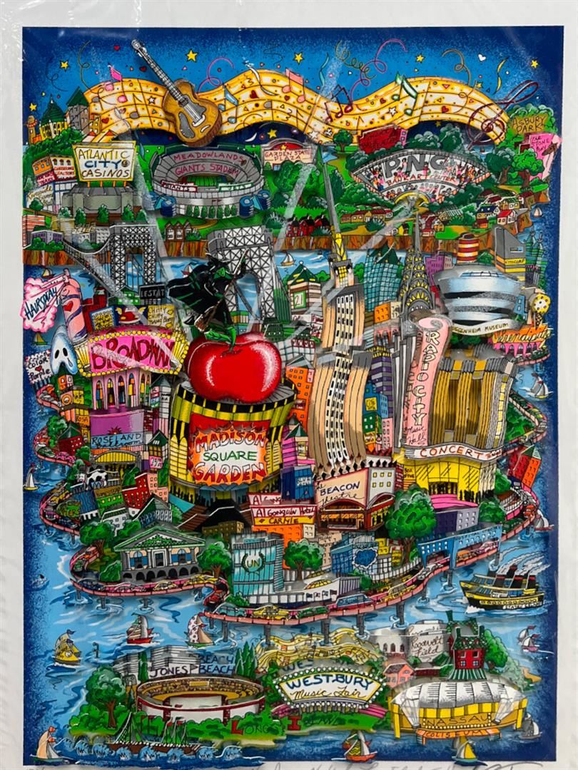There's Music NY. NJ & Long Island Too by Fazzino, Charles. Limited Hand Signed 3 Dimensional Serigraph Must Ship Flat. Dimensions: 23.5 x 19 x 1.5. Excellent Condition.