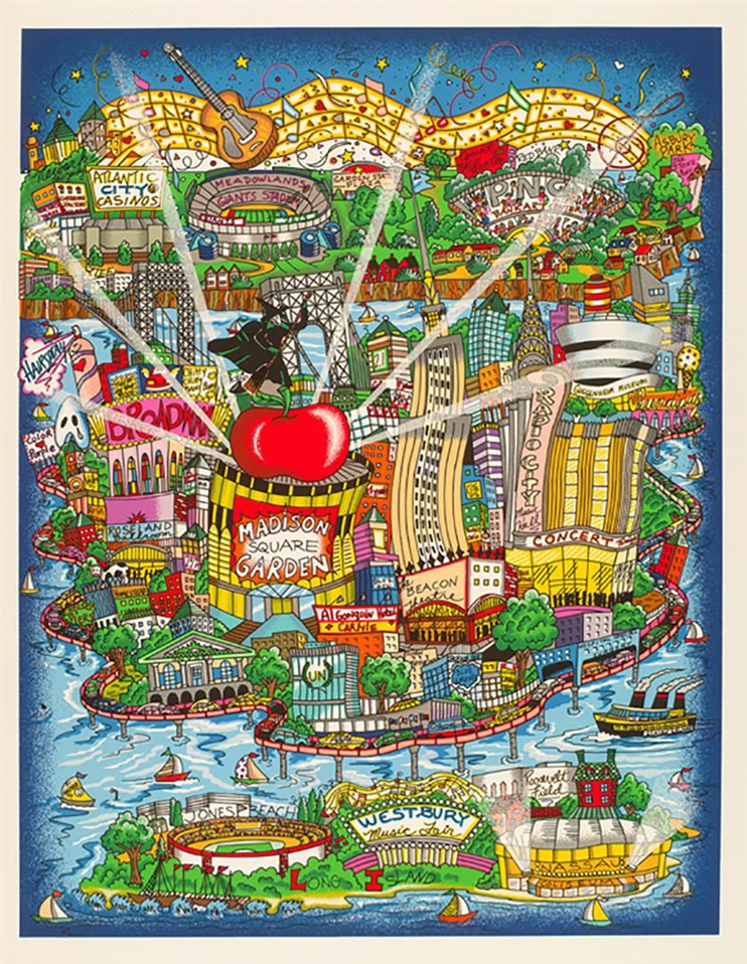 There's Music NY. NJ & Long Island Too by Fazzino, Charles. Limited Hand Signed 3 Dimensional Serigraph Must Ship Flat. Dimensions: 23.5 x 19 x 1.5. Excellent Condition.