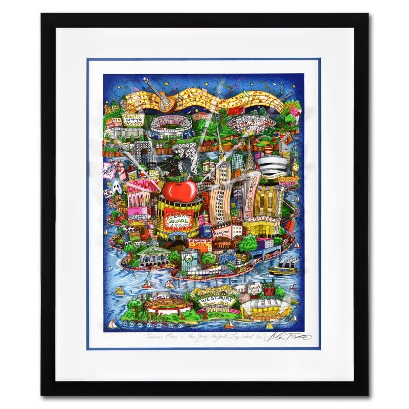 "There's Music: New Jersey, New York, Long Island Too!!" is a 3D limited edition silk screen construct on paper by Charles Fazzino, DX numbered 85/100 and hand signed by the artist. This piece comes custom framed. Includes Certificate of Authenticity. Measures approximately 23.5" x 28" (frame), 14.5" x 20" (image).