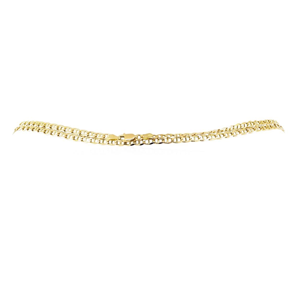 One anchor link chain measuring thirty inches in length and 3.2mm wide featuring: 14KT yellow gold weighing 12.7 grams.