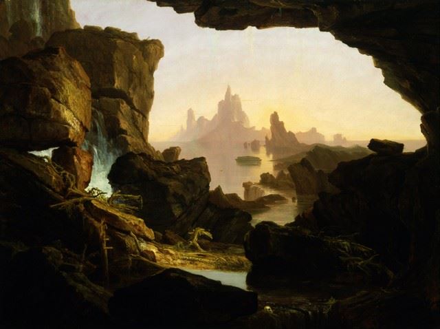Artist: Thomas Cole - Title: The Subsiding of the Waters of the Deluge - Medium: Fine Art Giclee on Canvas - Image Size: Approximately 24 inches x 32 inches - Framed: Unframed on Unstretched Canvas - Biography: Thomas Cole (February 1, 1801 - February 11, 1848) was an English-born American painter known for his landscape and history paintings. One of the major 19th-century American painters, he is regarded as the founder of the Hudson River School,[1][2] an American art movement that flourished in the mid-19th century. Cole's work is known for its romantic portrayal of the American wilderness