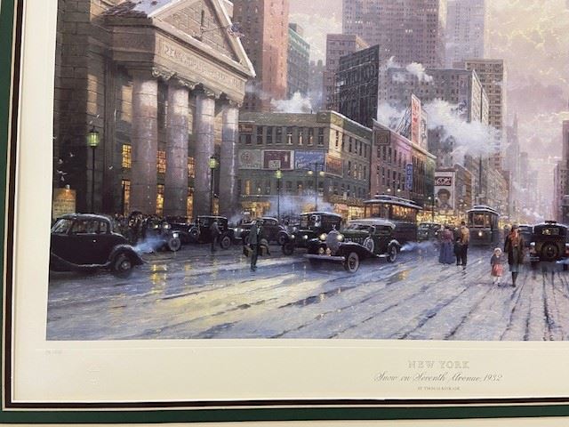 A Vintage lithograph on paper, Image size 18 X 27" signed & numbered 84/935 by Thomas Kinkade. Matted to 28 x 36"
