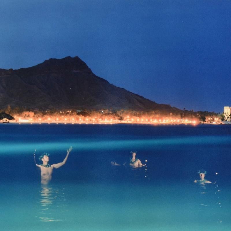 "Three Hawaiian Spirits in Waikiki" is a limited edition on paper, numbered and hand signed by photographer, Robert Sheer. Sheer created this piece using his "Spirit Shadows" technique which involves using a single-exposure ranging from minutes to hours in which he walks into the shot creating figures on film; no photoshop or digital manipulation is involved. Includes Certificate of Authenticity. Measures approx. 32" x 16" (border), 28" x 12.5" (image).